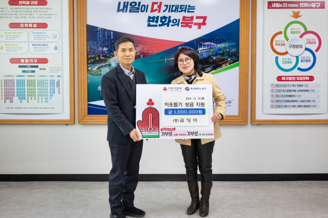 부산 북구(구청장 오태원)는 지난 16일 김양아 씨가 ‘2024년 부산 북구 장인’으로 선정돼 받은 상금 100만 원을 이웃돕기 성금으로 기탁했다고 밝혔다.