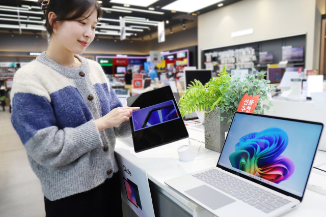 롯데하이마트가 이달 말까지 전국 320여 개 매장에서 연말 선물과 겨울철에 수요 높은 품목 중심으로 특별 할인 혜택을 제공한다. 모델이 롯데하이마트 매장에서 스마트 기기를 살펴보고 있다. 롯데하이마트 제공