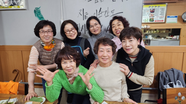 이 모임엔 회장이 없다. 2년에 한 번씩 돌아가며 맡는 총무만 있다. 이번 총무를 맡은 하수연(생활지원사), 김순옥(전 피자가게 사장), 장복희(전 미용실 원장, 호텔 종업원), 배숙자(족발집 주방장), 전옥임(백화점 매니저), 백말연(영주2동 새마을부녀회장), 황미숙(동화작가) 씨다.