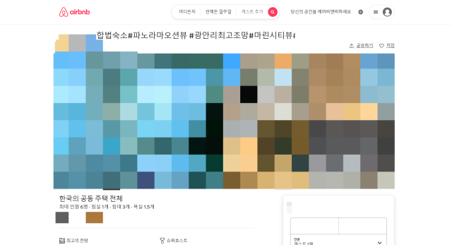 공유숙박 서비스를 제공하는 ‘에어비앤비’에 올라온 부산의 한 공유숙박 숙소 게시글. 해당 숙소는 A기업을 통해 특례 증명서를 받았다며 합법이라 광고하고 있다. 에어비앤비 홈페이지 캡쳐