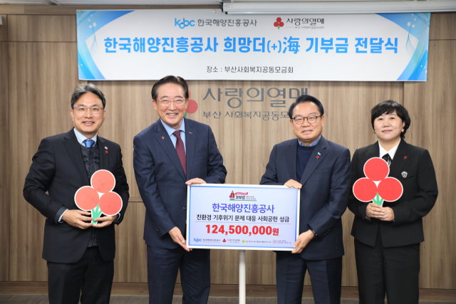 한국해양진흥공사(사장 안병길·해진공)는 19일 부산사회복지공동모금회(사랑의열매) 사무실에서 ‘기후변화 문제에 대한 친환경 대응’ 특별 성금 1억 2450만 원) 전달식과 나눔명문기업 ‘실버등급’ 승급식을 가졌다.