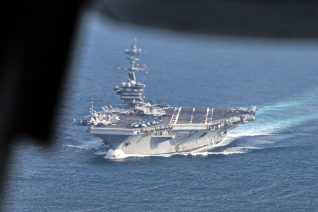 지난달 14일 제주 남방 공해상 미국 항공모함 조지워싱턴함에서 한미일 다영역 훈련 24-2차 프리덤 에지가 열리고 있다. 합참 제공