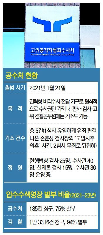 공수처는 당장 수사팀 규모가 경찰 특별수사단(150명)이나 검찰 특별수사본부(100명)에 비해 턱없이 부족한 형편이다. 수사력이나 경험 부족에 대한 비판도 부인할 수 없는 현실이다. 공수처는 내란사태 수사 국면에서 문상호 정보사령관을 상대로 체포영장을 집행했다. 출범 3년 11개월 만에 공수처가 청구하고 법원에서 발부받은 최초의 체포 영장이다.