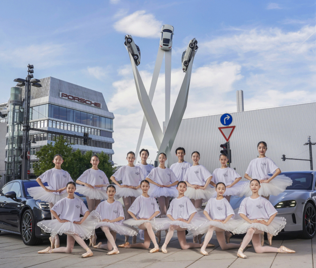 발레에 재능있는 취약 계층, 전공생들에게 해외 연수 기회를 제공하는 ‘포르쉐 터보 포 드림- 발레’ 프로젝트’ 참여 학생들이 독일 슈튜트가르트 포르쉐 본사 앞에서 기념사진을 촬영하고 있다.포르쉐코리아 제공
