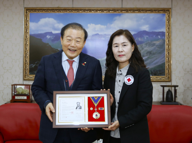 은산해운항공(주)(회장 양재생)이 지난 16일 대한적십자사 부산지사(회장 서정의)에서 적십자 인도주의 활동에 기여한 공적으로 적십자 회원 유공장 명예장을 받았다.