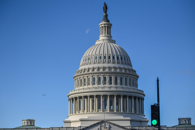 임시예산안(CR)이 상하원 문턱을 넘은 21일(현지 시간) 워싱턴DC 미 국회의사당 앞 신호등에 초록불이 들어와 있다. AFP연합뉴스