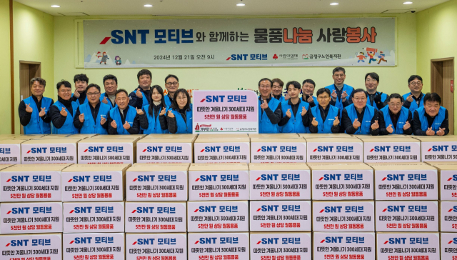 SNT모티브는 금정구 독거노인 등 도움이 필요한 이웃 300가구들을 대상으로 이불, 베개, 장갑, 양말 등 방한용품들을 직접 포장 및 전달하는 봉사 활동을 펼쳤다.