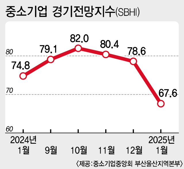 중소기업중앙회는 23일 부산·울산지역 중소기업 326곳을 대상으로 지난 11~17일 실시한 ‘2025년 1월 중소기업경기전망조사’ 결과를 발표했다.