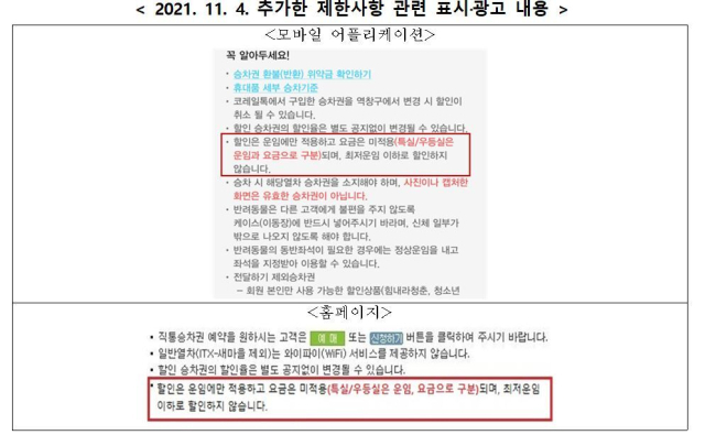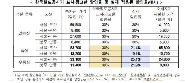 KTX 특실 ‘30% 할인’ 등으로 표시·광고한 할인율