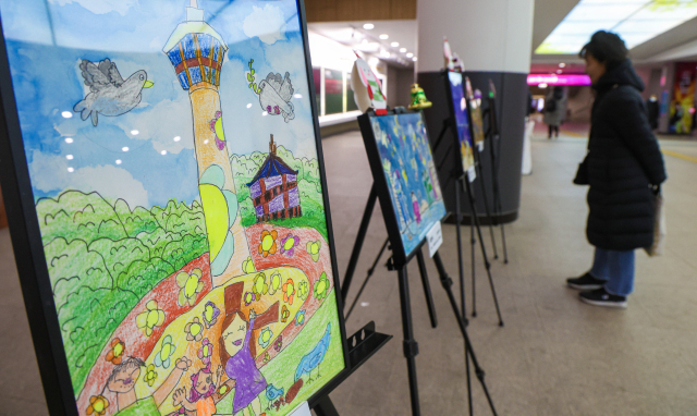 ‘아이가 행복입니다. 부산’ 어린이 그림 공모전 수상작 전시회가 23일 도시철도 1호선 시청역 연결통로에서 열렸다. 오는 27일까지 열리는 이번 전시는 ‘부산에서 행복한 우리 가족’을 주제로 유아와 초등학생을 대상으로 열린 공모전 수상작 35점이 전시된다.