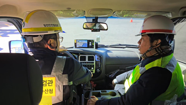 급가속 방지 장치를 체험해 보는 줄잡이 업체 관계자. 부산컨테이너터미널(BCT) 제공