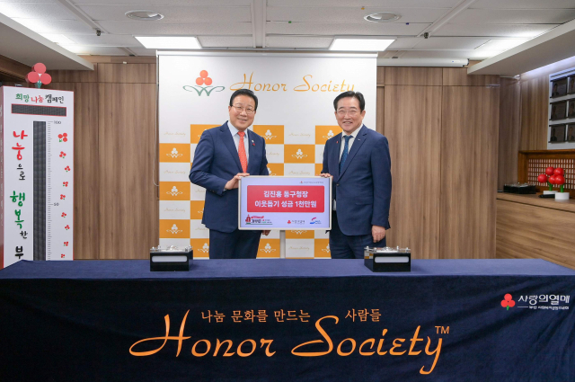 김진홍 동구청장은 지난해 7월 부산사랑의열매의 고액기부자의 모임인 아너 소사이어티에 323호 회원으로 가입해 총 1억 원의 기부금을 약정했고, 현재까지 나눔을 이어가고 있다.