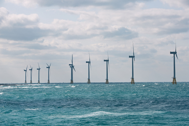 국내 최초 상업용 해상풍력발전 단지인 제주시 한경면 탐라해상풍력발전 전경. 녹색채권은 재생에너지 같은 지속가능한 미래에 투자한다는 것을 앞세워 발행만 이뤄지면 사실상 흥행이 보장돼 있다. 부산일보DB