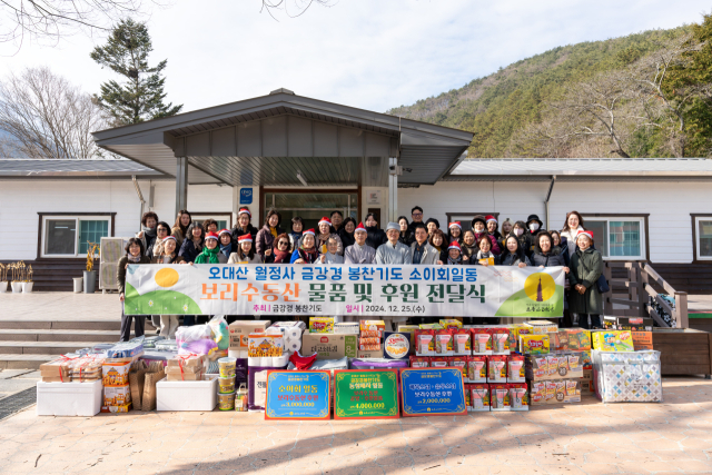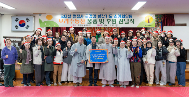 오대산 월정사 금강경봉찬기도 소이회 봉사단은 지난 25일 경남 고성군 개천면 보리수동산(원장 정흥의)을 방문해 원생에게 크리스마스를 맞아 장학금 300만 원과 빵·라면·간식·이불 등 총 700만 원 상당의 후원물품을 전달했다.