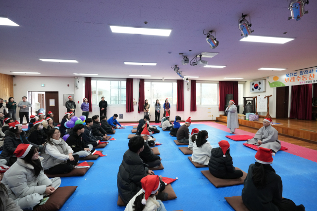 특히 이날 동행한 월정사 신행국장 승우스님과 실장 혜묵스님은 석사학위 수여식을 앞두고 받은 논문 상금으로 원생 40명 모두에게 장학금을 전달하며 산타복을 입고 아이들과 함께 보냈다.