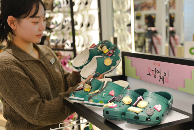 롯데백화점 부산본점 5층 크록스 매장에서는 넷플릭스 ‘오징어게임 시즌2’ 방영에 맞춰 녹색 운동복 컬러에 26개 지비츠(신발 액세서리)가 부착 가능한 ‘오징어게임 클래식 클로그’를 판매한다. 다양한 테마로 맞춤형 장식이 가능하며 앵클 스트랩에는 참가자 ID ‘456’ 숫자 부착 디테일이 돋보이는 것이 특징이다. 롯데백화점 제공