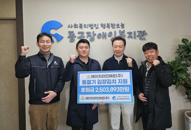 에이치라인해운(주)(사장 서명득)은 지난 27일 동절기 김장김치 지원을 위해 250여만 원을 동구장애인복지관(관장 이재영)에 후원했다.