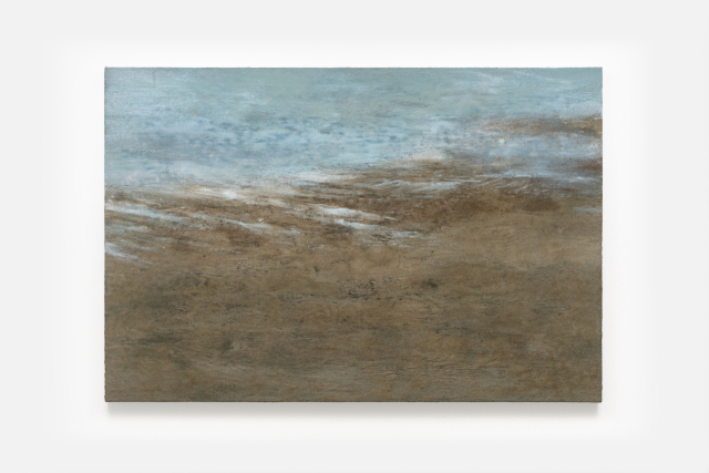작품 사이즈에 따라 마대를 씌운 판넬, 캔버스, 장지 등을 사용하는데 흙, 모래, 숯, 진주, 조개, 광물성 안료 등 자연에서 추출한 재료를 흩뿌리고, 칠하고, 긁어내는 과정을 반복했다. 흙의 원초적인 질감, 반짝이는 진주 가루에선 생명력이 넘치는 듯하다. 전시는 5일까지 열린다.