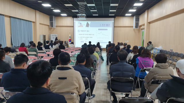 경남 산청군 신등중고등학교에서 열린 적정규모 학교 육성 추진설명회. 경남도교육청 제공