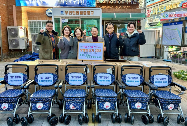 부산 수영구 수영동 행정복지센터(동장 강두리)는 지난달 31일 수영장학회 김정수 이사장이 취약계층 어르신들을 위해 실버카 20대(300만 원 상당)를 지원했다고 밝혔다.
