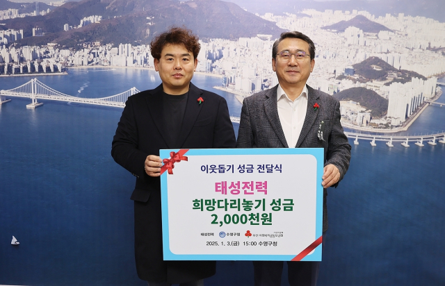 태성전력(대표이사 김종환)은 지난 3일 부산 수영구(구청장 강성태) 구청장실에서 저소득 취약계층을 대상으로 성금 200만 원을 전달했다.