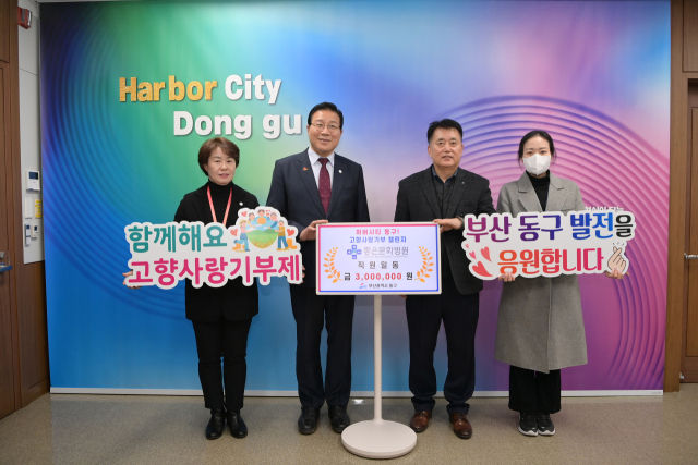 좋은문화병원(병원장 문화숙) 직원들은 최근 부산 동구(구청장 김진홍)의 고향사랑기부 챌린지에 참여해 300만 원을 기부했다.