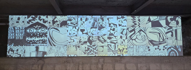 이들의 선택은 이른바 ‘키네틱 벽화’였다. 벽면에 움직이는 영상을 표현하려 한다면 흔히 LED 영상 패널을 사용할 것이라 생각하겠지만, 이들은 좀더 가성비 높은 방법을 택했다. 주차장 벽에 나무 패널 3개를 붙이고, 빔프로젝터로 패널에 영상을 투사하는 게 전부였다. 영상에는 처칠의 작품 70여 점이 등장한다. 임 건축가가 직접 작품을 골랐다.