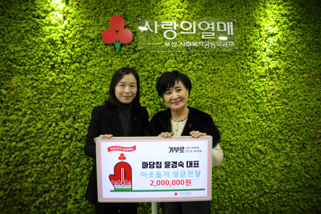 부산 서면의 한식당 마당집 윤경숙 대표가 부산사회복지공동모금회(회장 이수태·부산사랑의열매)에 이웃돕기 성금 200만 원을 기탁하며 희망2025 나눔 캠페인에 참여했다.