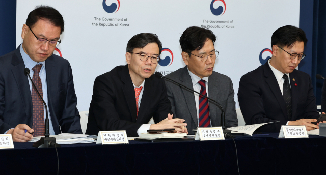 지난해 12월 27일정부세종청사에서 기획재정부 김재훈 경제정책국장(왼쪽 두 번째)이 재생에너지 확충 등을 포함해 2025년 경제정책 방향 주요 내용을 설명하고 있다. 연합뉴스