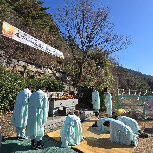 경남 사천군 사남면 이장협의회가 지난 4일 이구산 구룡저수지 제방 옆에서 사천시가 세계적인 우주항공도시로 발돋움하기를 염원하는 기원제를 봉행했다. 사천시 제공