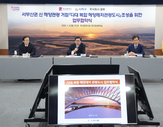 시는 정부 공모 사업을 따내 해양레저도시 개발에 추진 동력을 더한다는 구상을 세웠다. 시는 엘튼, 관할 지자체인 사하구청과 손잡고 해양수산부 ‘복합 해양레저관광도시 조성’ 공모 사업에 참여하기로 결정했다. 시와 사하구청, 엘튼은 이날 오전 부산시청에서 공모 사업 참여를 위한 업무협약(MOU)도 체결했다.
