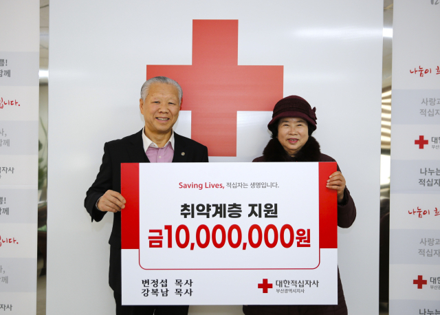 변정섭 부산복지중앙교회 당회장 목사와 강복남 목사 부부가 지난 3일 부산 지역 취약계층 지원을 위해 1000만 원을 기부했다.