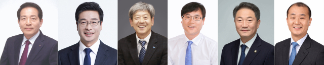 거제시장 재선거 더불어민주당 경선 후보. 왼쪽부터 권순옥, 김성갑, 백순환, 변광용, 옥영문, 황양득. 부산일보DB