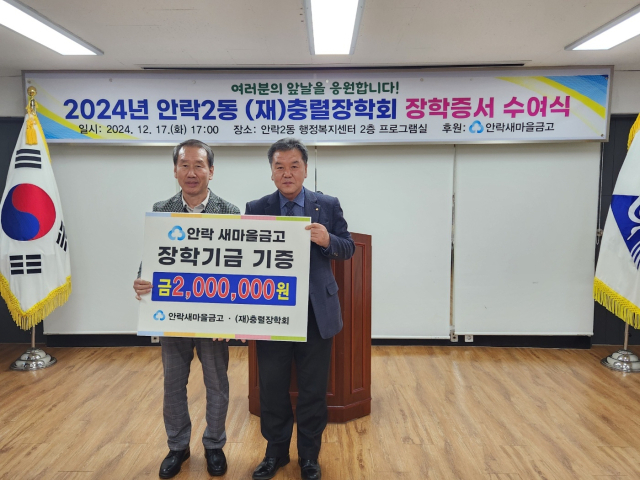 이날 장학증서 수여식에서는 안락새마을금고(이사장 임삼섭)에서 장학금 200만 원을 기탁했다.