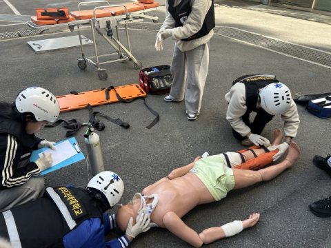 부산대학교병원 박태민 응급구조사의 재능기부로 이루어진 이번 교육은 3학년 졸업예정자 박소윤 외 2명(1급 응급구조사 취득)이 환자 역할을 맡아 실습을 진행했으며 박태민 응급구조사는 학생들에게 전문적인 피드백을 제공하며 교육의 질을 높였다.