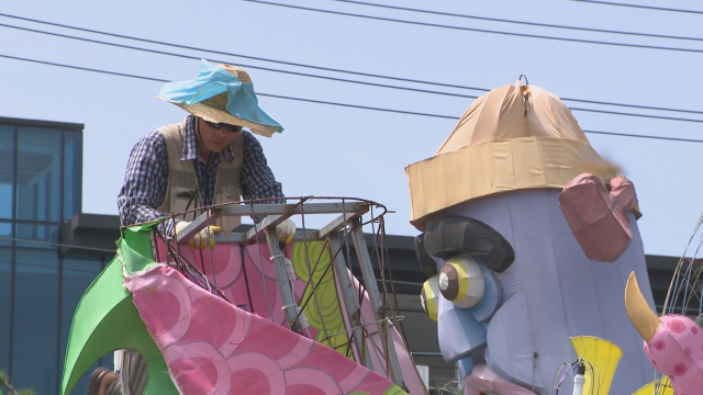 경남 진주시 신안동 유등제작 현장 모습. 진주 유등은 보통 3월부터 9월 사이 제작돼 유등축제 기간에 활용된다. 김현우 기자