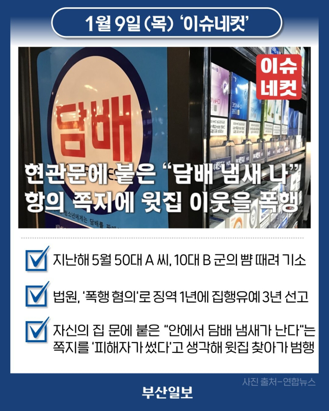3. 현관문에 붙은 “담배 냄새 나” 항의 쪽지에 윗집 이웃을 폭행