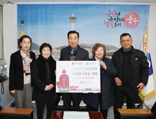 비프광장 상인연합회(회장 이용준)는 지난 8일 부산 중구(구청장 최진봉)를 방문해 회원들이 모은 이웃돕기 성금 120만 원을 기탁했다.