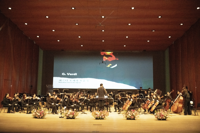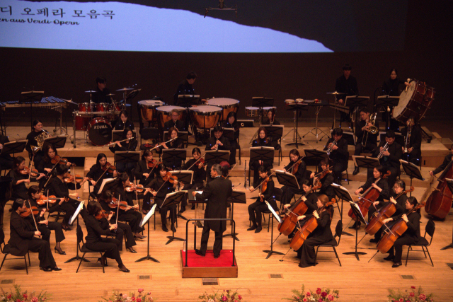 유나이티드 코리안 오케스트라(유코)가 지난해 12월 26일 부산문화회관 대극장에서 '송년 음악회-유코와 친구들'을 열고 있다. 유코 제공