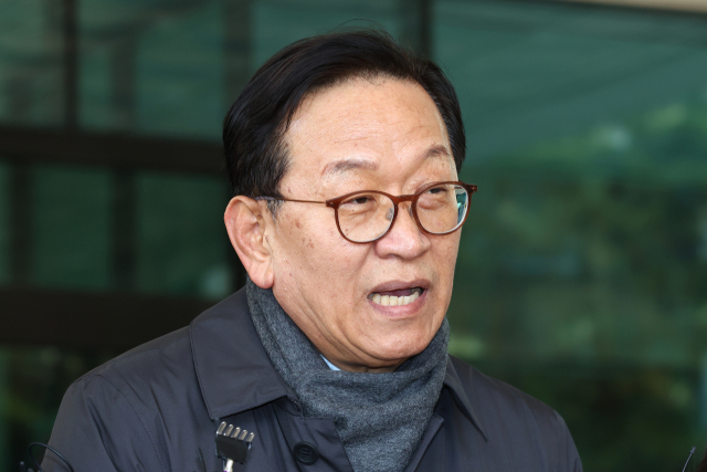'12·3 비상계엄 사태'로 수사와 탄핵심판을 받게 된 윤석열 대통령의 변호인단 구성에 참여한 석동현 변호사가 19일 오후 서울 서초구 서울고등검찰청 앞에서 입장을 표명하고 있다. 연합뉴스