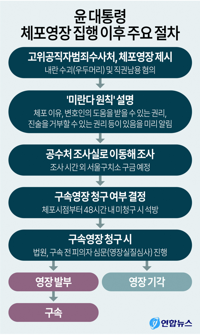 고위공직자범죄수사처(공수처)의 윤석열 대통령에 대한 구속영장 청구가 ‘초읽기’에 들어갔다. 법조계는 묵비권을 행사 중인 윤 대통령에 대해 48시간 이내 구속영장 청구를 할 것으로 본다.