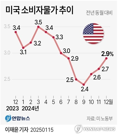 12월 미 소비자물가 2.9% 상승…금리인하 기대감 사라지나