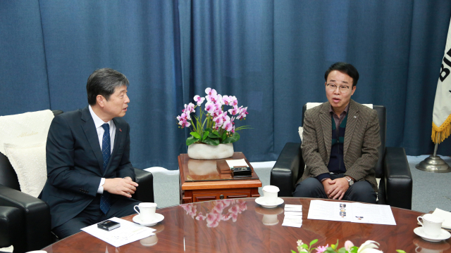 허현도 중소기업중앙회 부산울산회장은 지난 15일 부산진해경제자유구역청을 방문해 박성호 청장과 간담회를 가졌다.