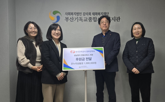 한전 중부산지사(지사장 노병곤)는 최근 설 명절을 맞아 부산기독교종합사회복지관을 방문해 온누리상품권 100만 원을 후원했다.