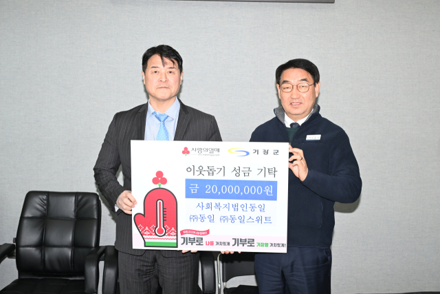 기장군은 동일스위트(사장 김은수)에서 지난 16일 이동성 기장군 부군수실을 방문해, 설 이웃돕기 성금 2000만 원을 기탁했다고 밝혔다.