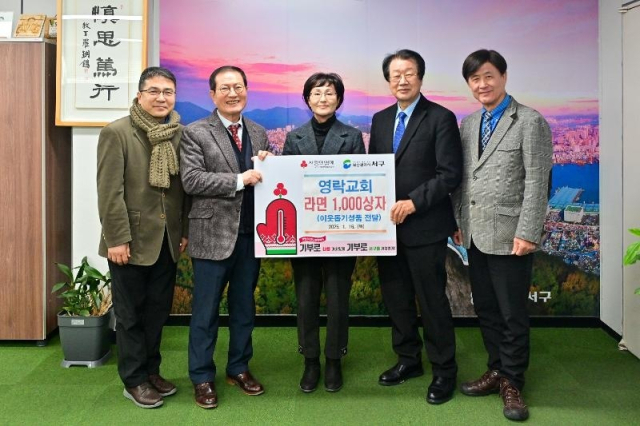 부산영락교회와 영락복지재단(이사장 윤성진)은 지난 16일 부산 서구청(구청장 공한수)을 방문 홀몸 어르신, 소년소녀 가장에게 컵라면 1000상자를 전달, 사랑의 희망나눔 천사(1004)나눔 기부행사를 가졌다.