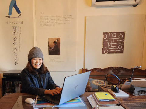 웹진 ‘같이 가는 기분’ 발행인이자 카페 영도일보 대표인 손음 시인은 일인 출판사라는 새로운 도전에 나섰다.