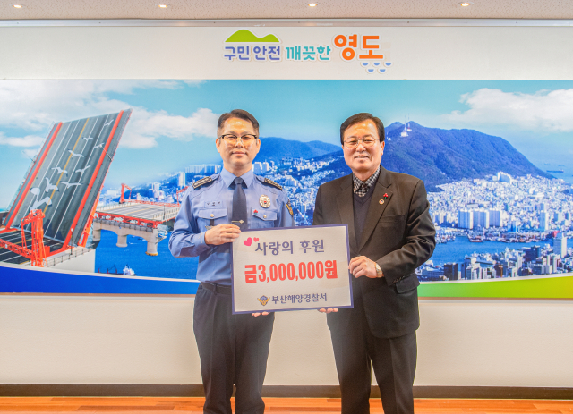 부산해양경찰서(서장 김형민)는 지난 21일 설 명절을 맞아 영도구(구청장 김기재)에 소외계층을 위한 이웃돕기 성금 300만 원을 기탁했다.