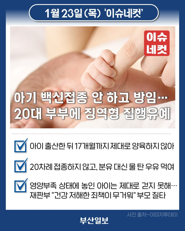 3. 아기 백신접종 안 하고 방임…20대 부부에 징역형 집행유예