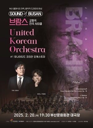 오는 20일 부산문화회관 대극장 무대에 오르는 ‘Sound of Busan : 브람스 교향곡 전곡 사이클’ 첫 무대를 알리는 유나이티드 코리안 오케스트라 공연 포스터. 부산문화회관 제공